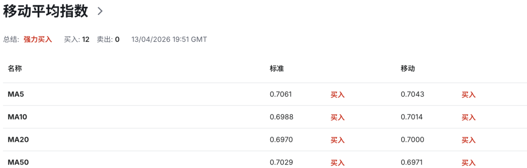 总体而言,澳币兑美元短线技术结构偏强,但布林带收窄暗示市场即将面临方向选择。上方0.7100区域的突破情况,将决定后续反弹能否进一步打开空间;而0.7020的防守力度,则是判断短期多头趋势是否维持的关键。